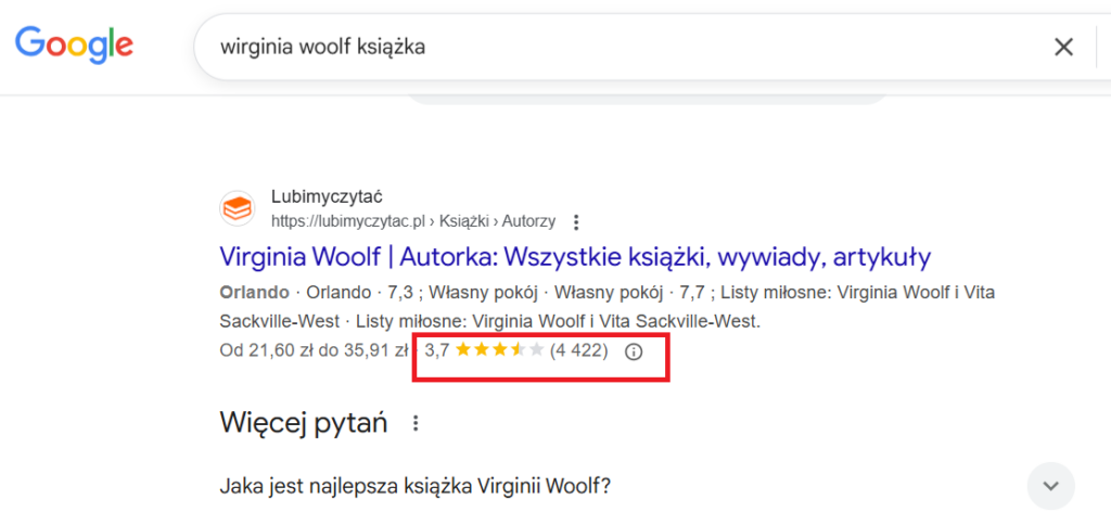 Dodając opinie na swojej stronie www nie tylko zwiększasz skłonność klientów do skorzystania z Twoich usług, ale także masz szansę aby pojawiły się w one w wyszukiwarkach przy wynikach Twojej strony www: